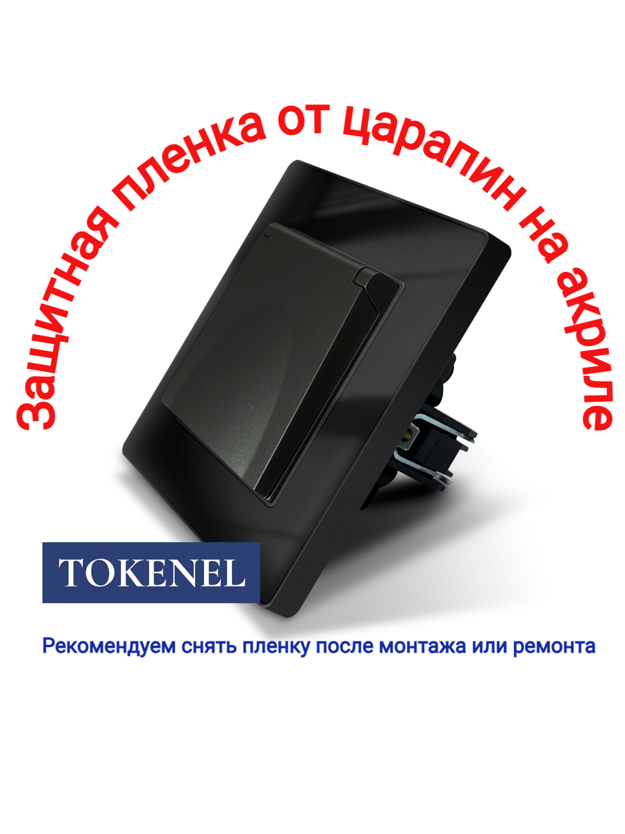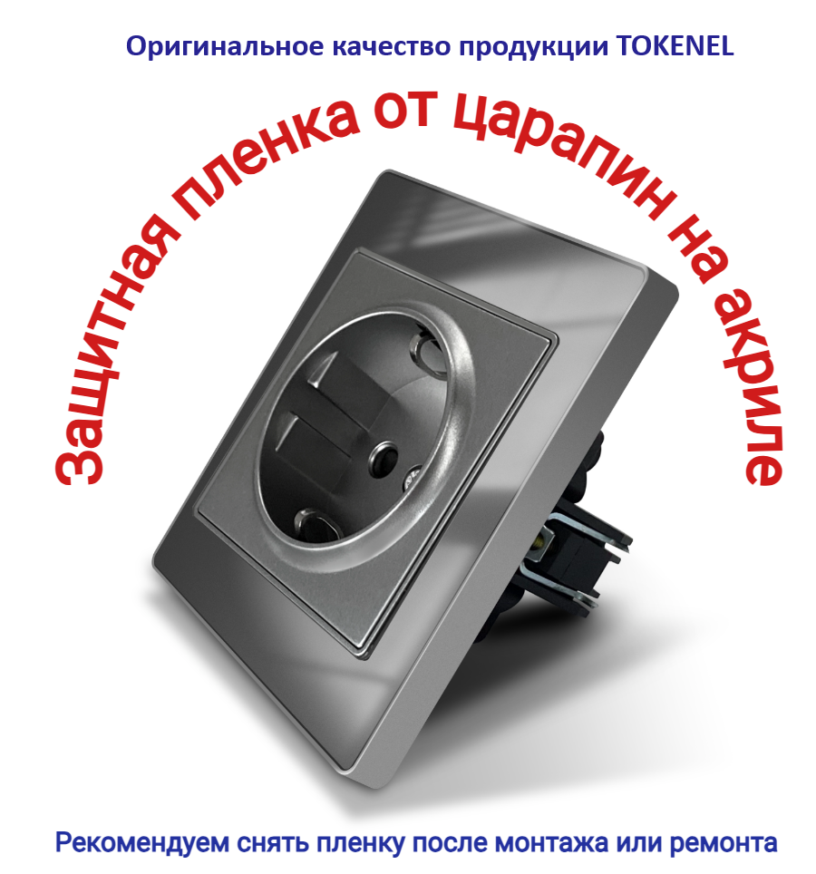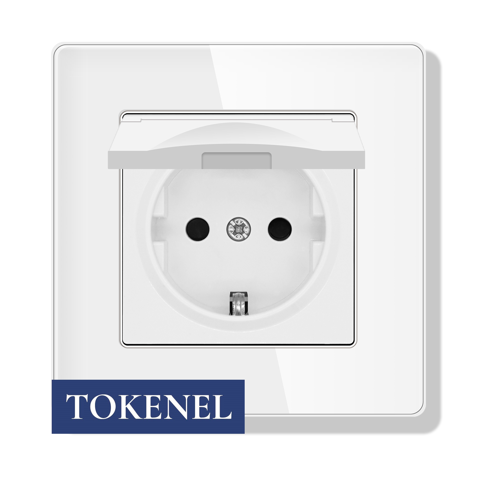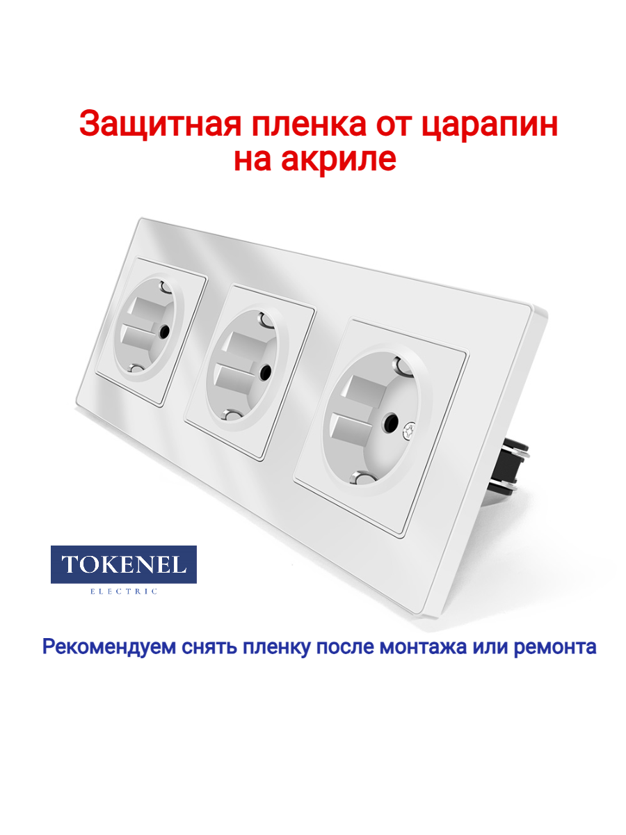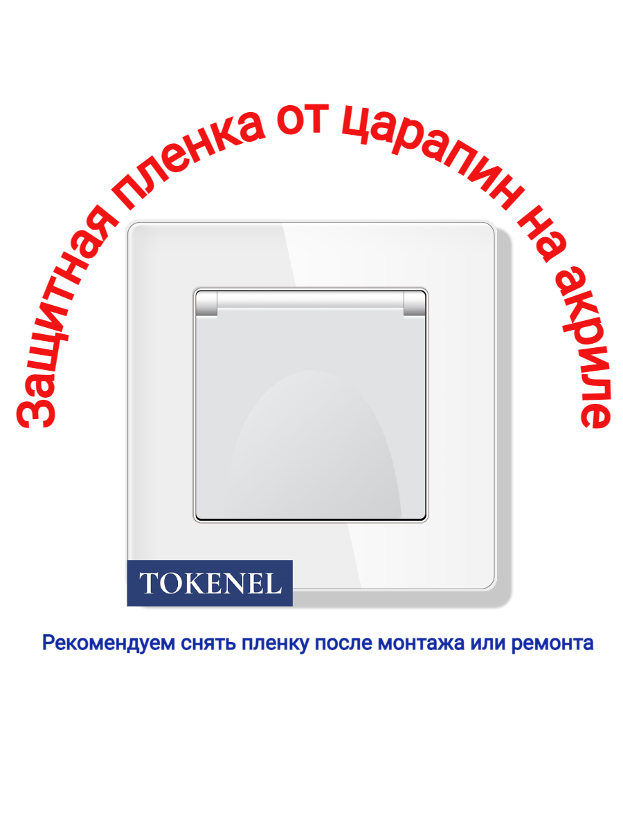 T000921500/ Розетка встраиваемая TOKENEL электрическая с заземлением и защитными шторками, рамка 86х86 мм, 16A, акриловое стекло, белая