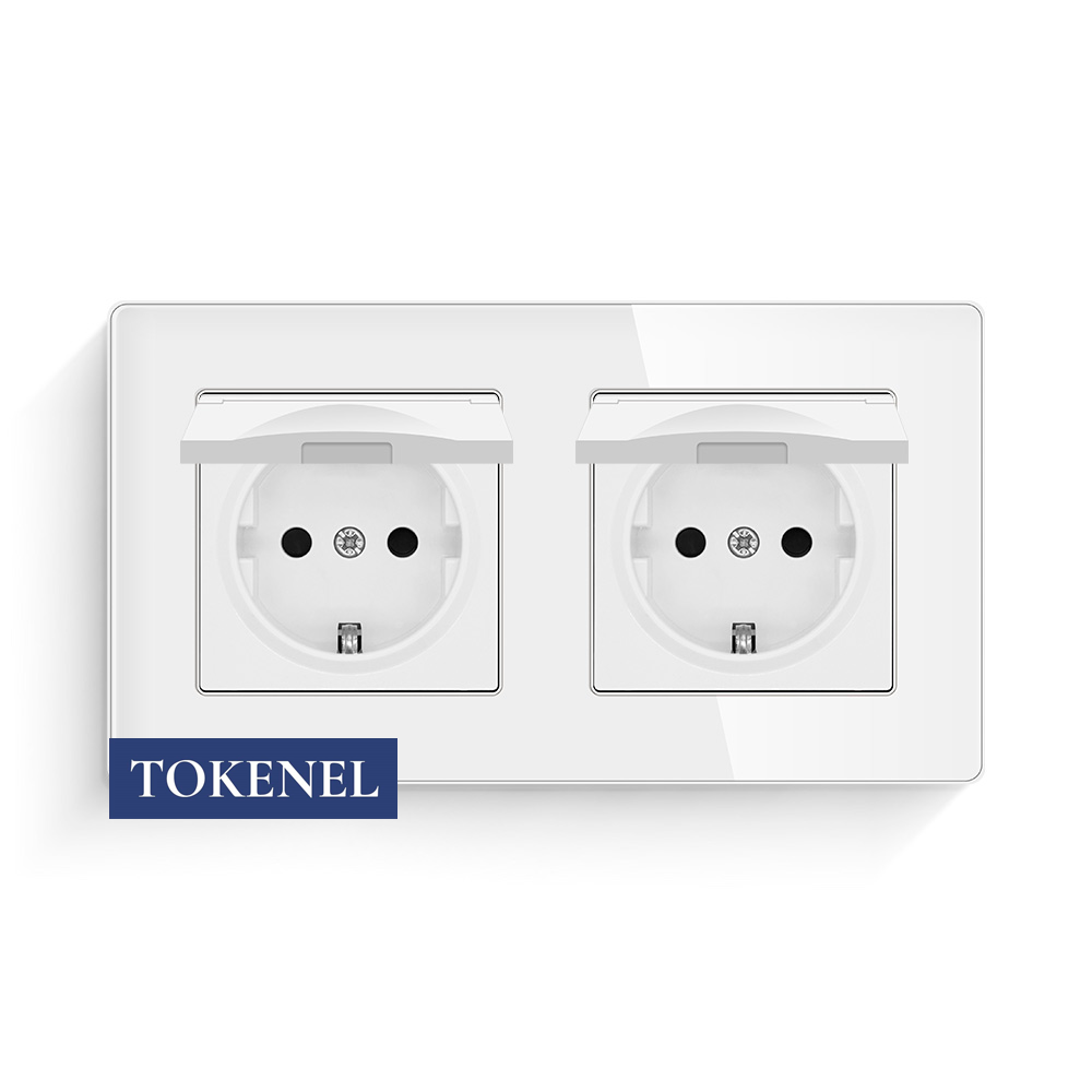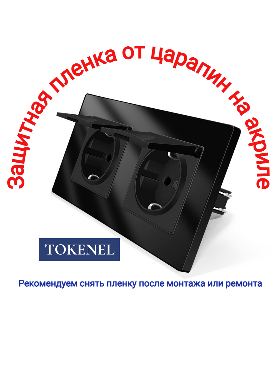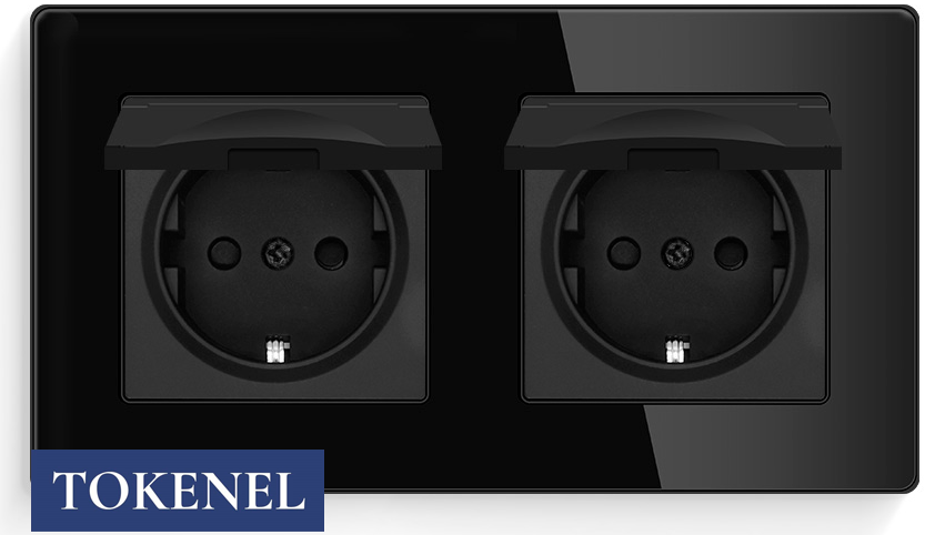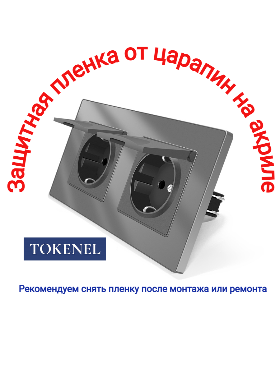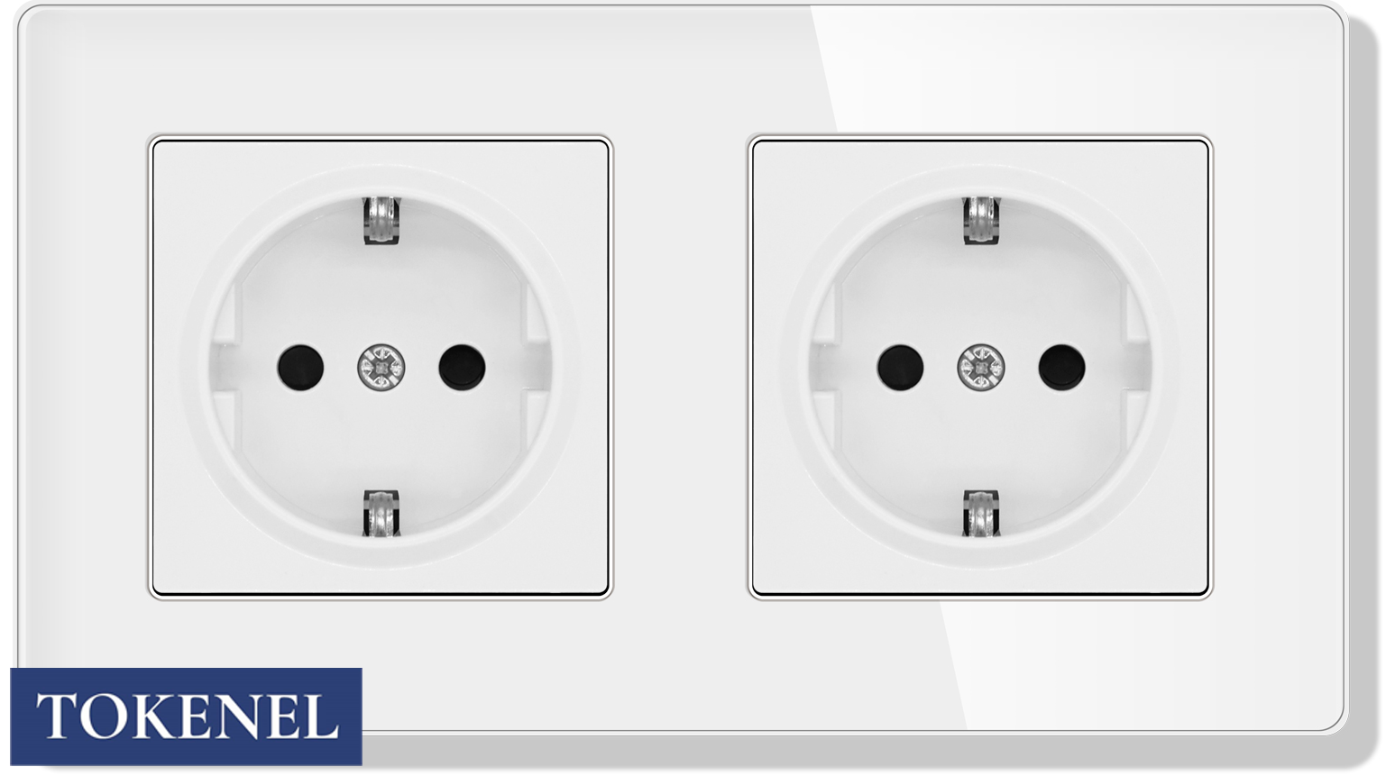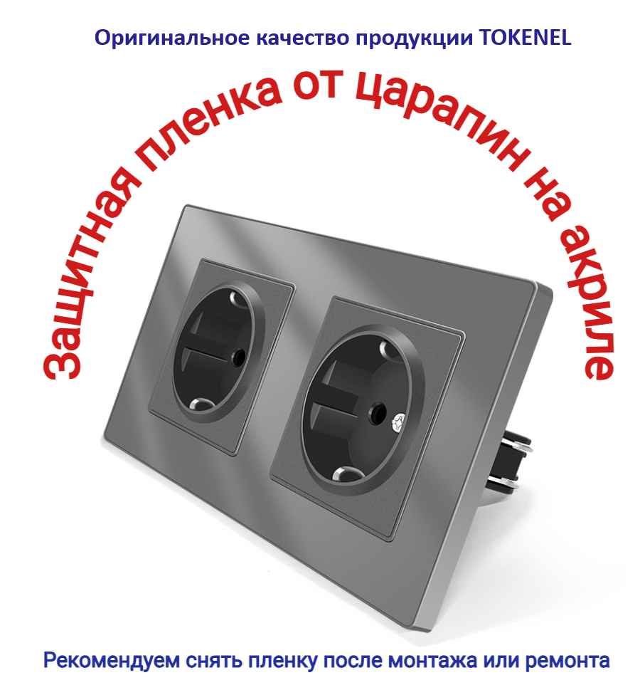 T000921500/ Розетка встраиваемая TOKENEL электрическая с заземлением и защитными шторками, рамка 86х86 мм, 16A, акриловое стекло, белая