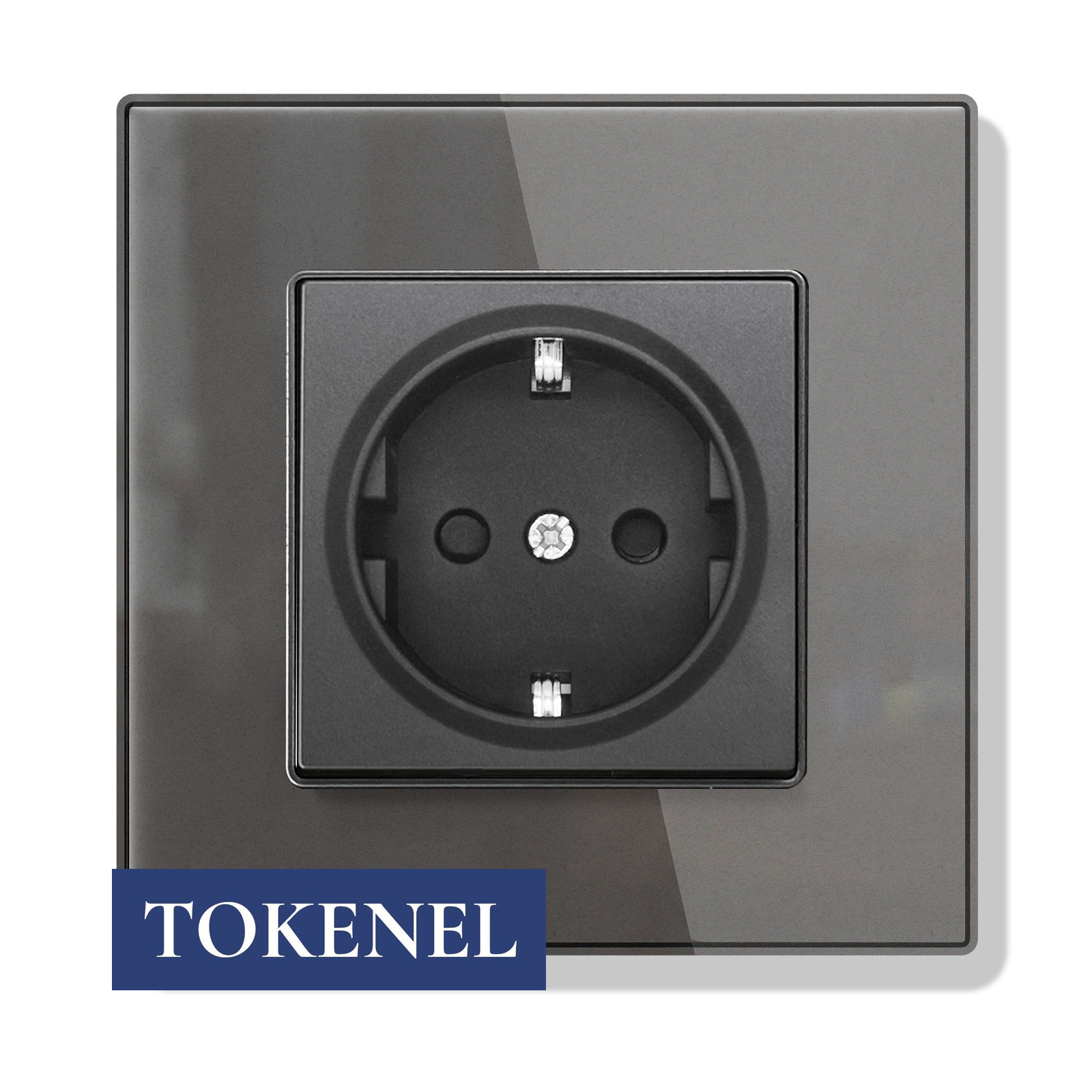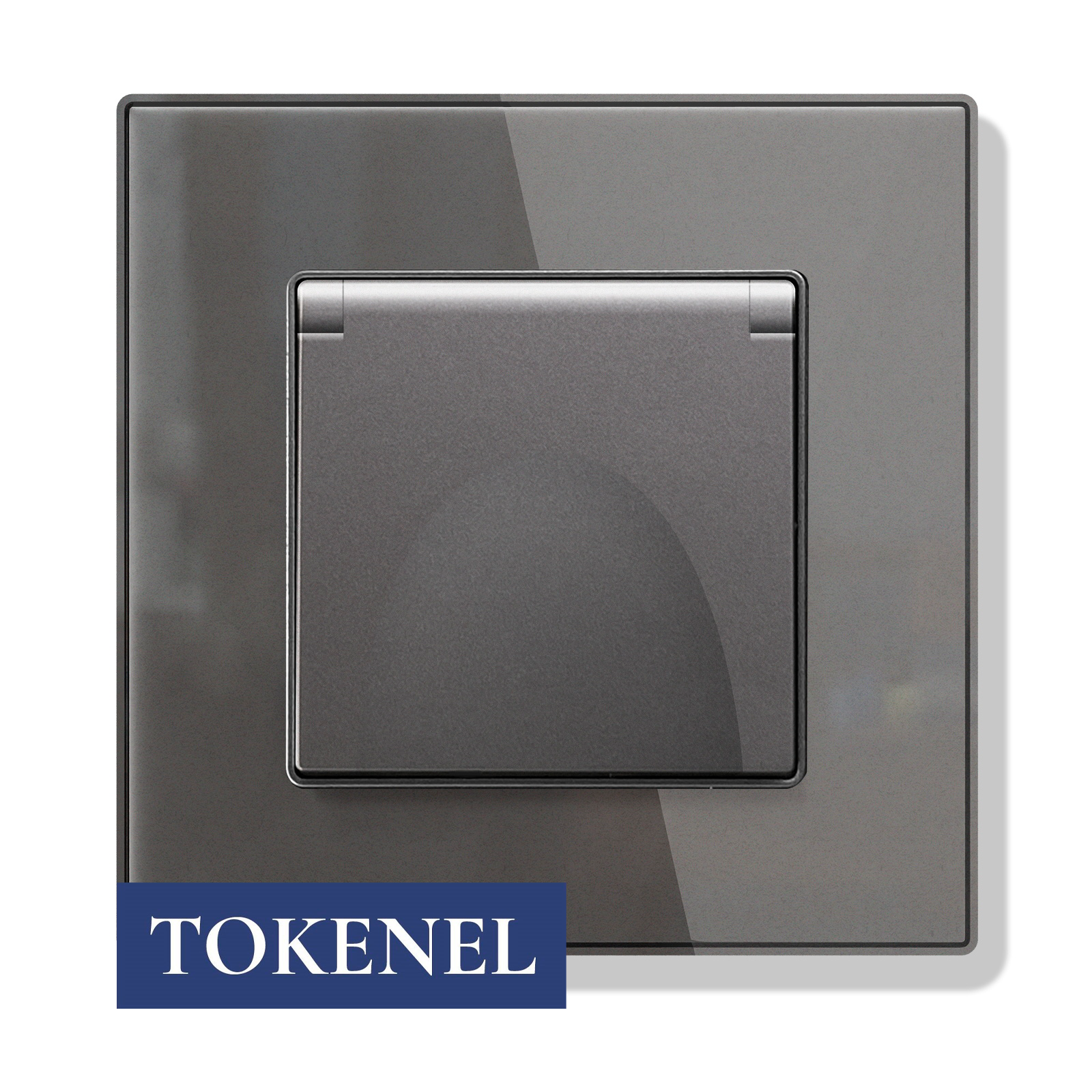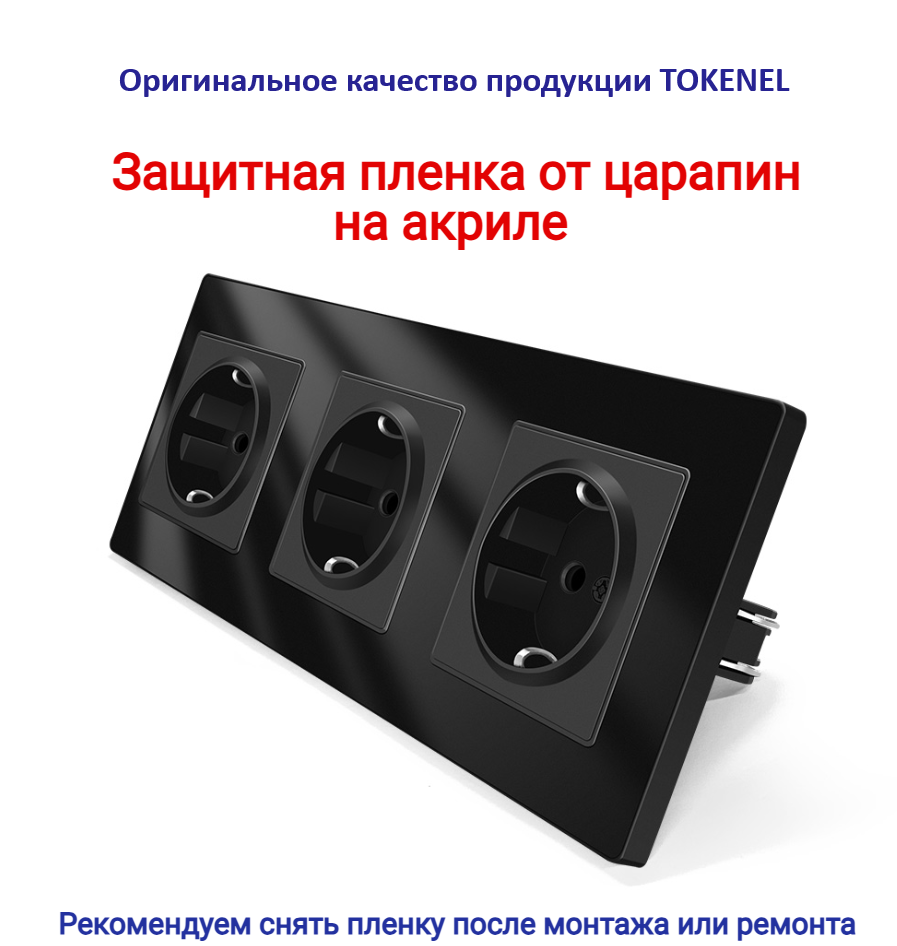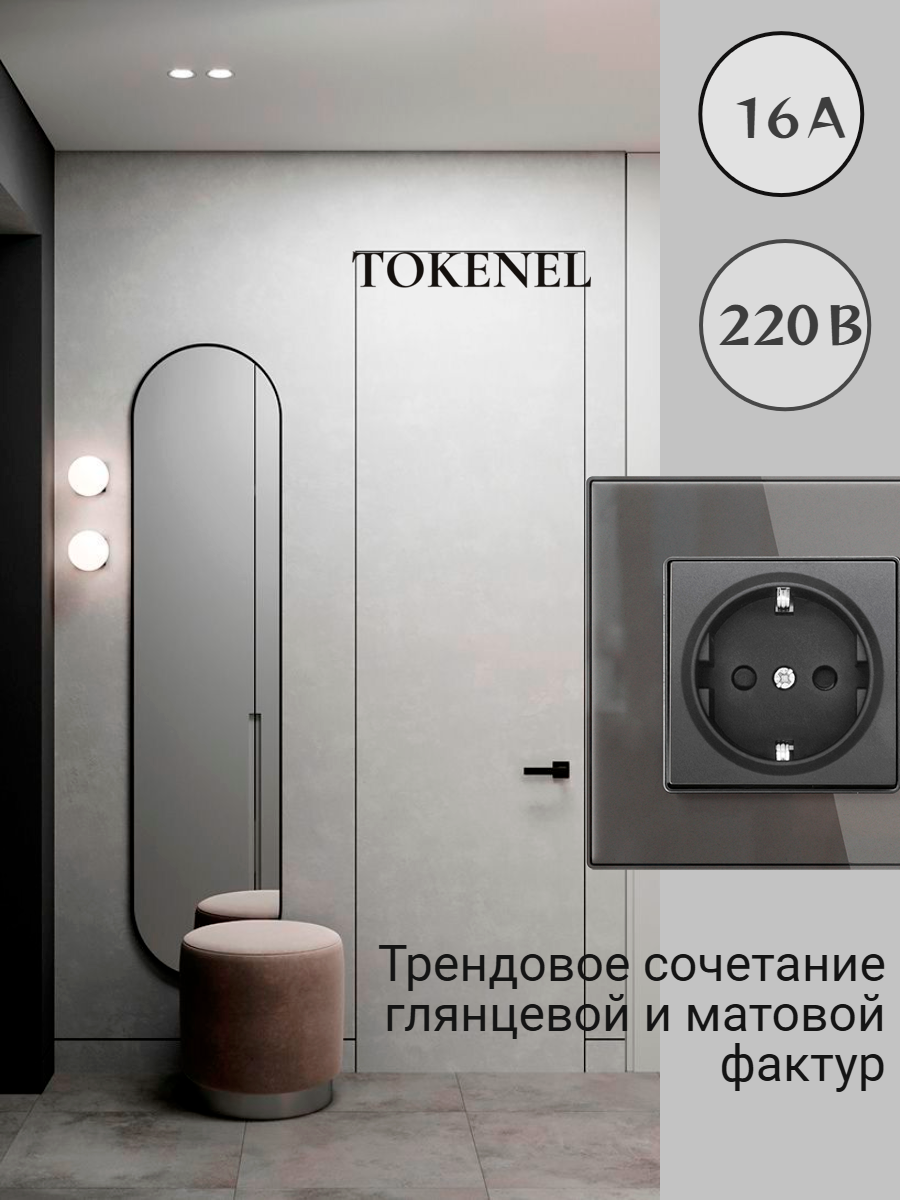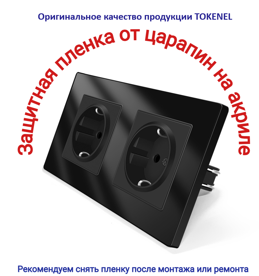 T000921500/ Розетка встраиваемая TOKENEL электрическая с заземлением и защитными шторками, рамка 86х86 мм, 16A, акриловое стекло, белая