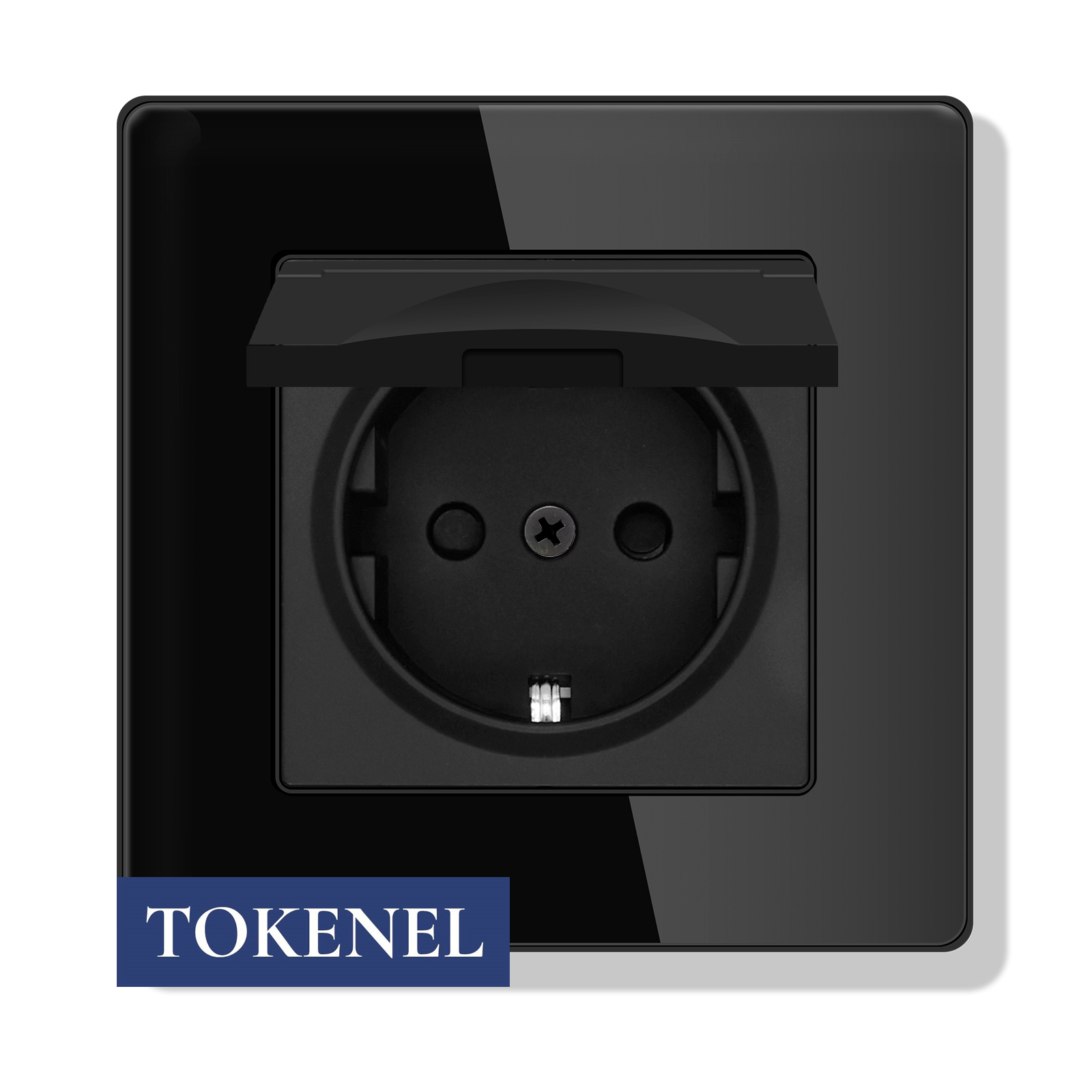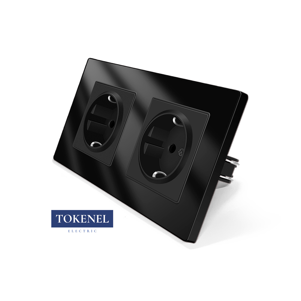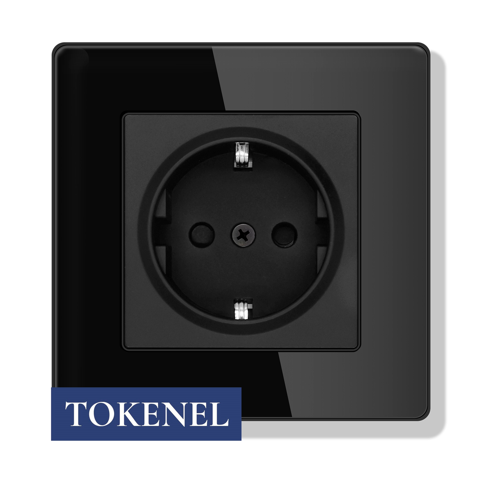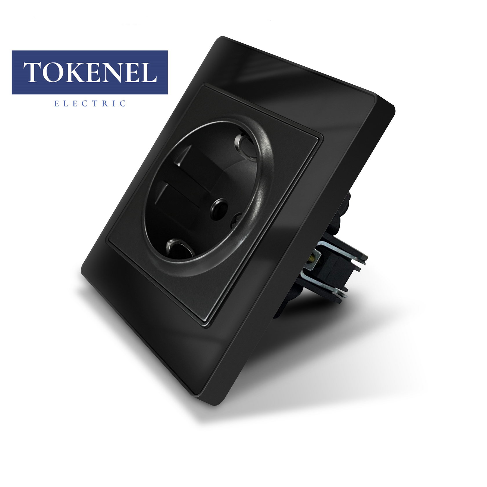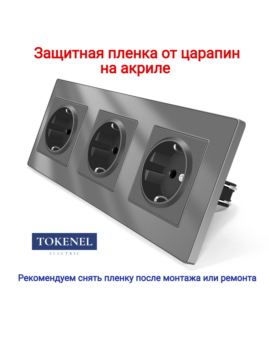 T000921500/ Розетка встраиваемая TOKENEL электрическая с заземлением и защитными шторками, рамка 86х86 мм, 16A, акриловое стекло, белая