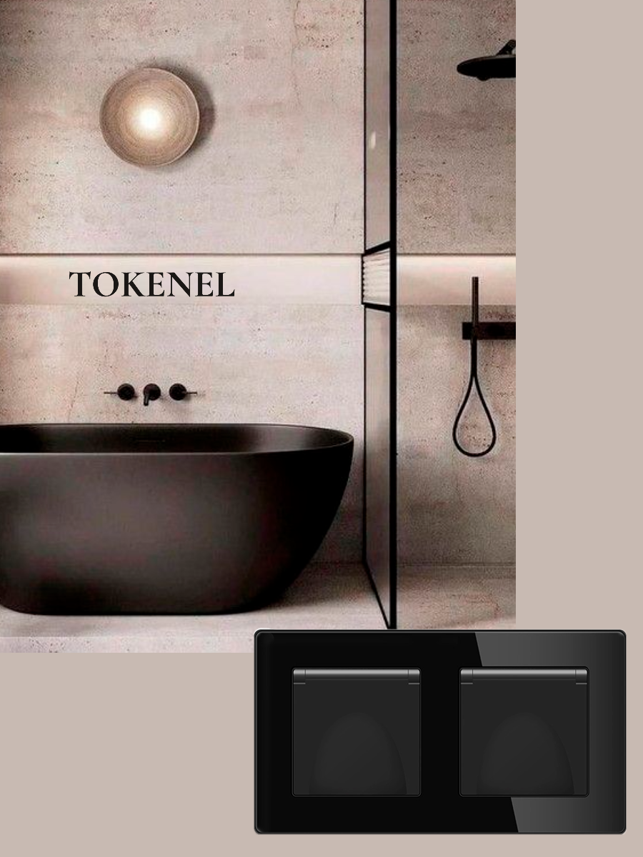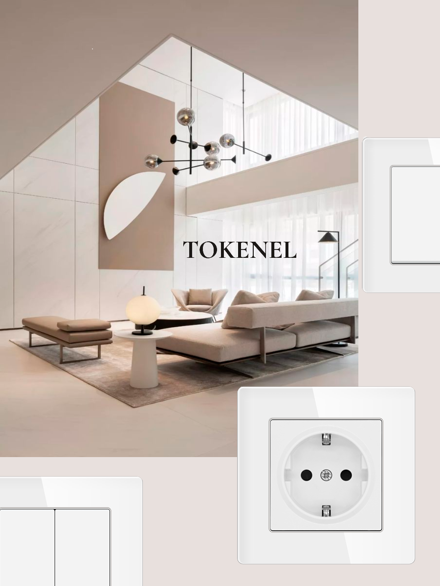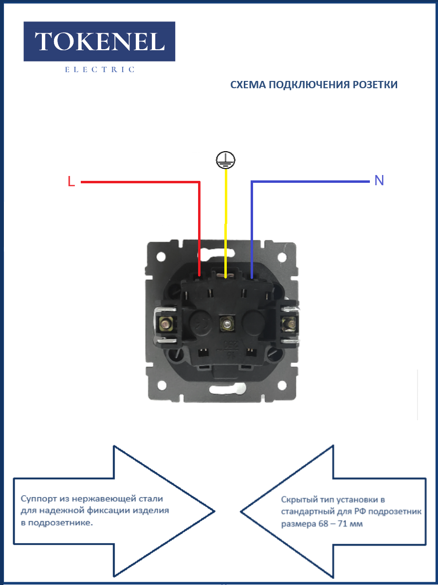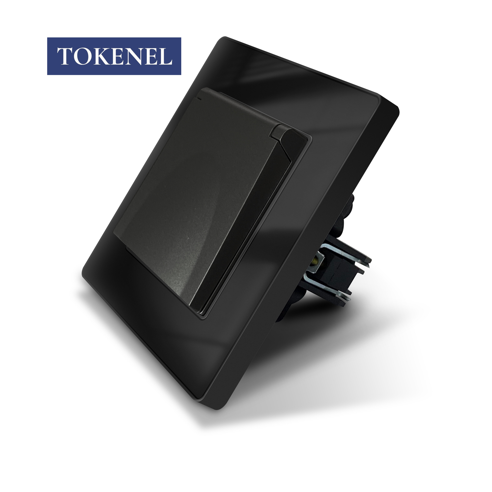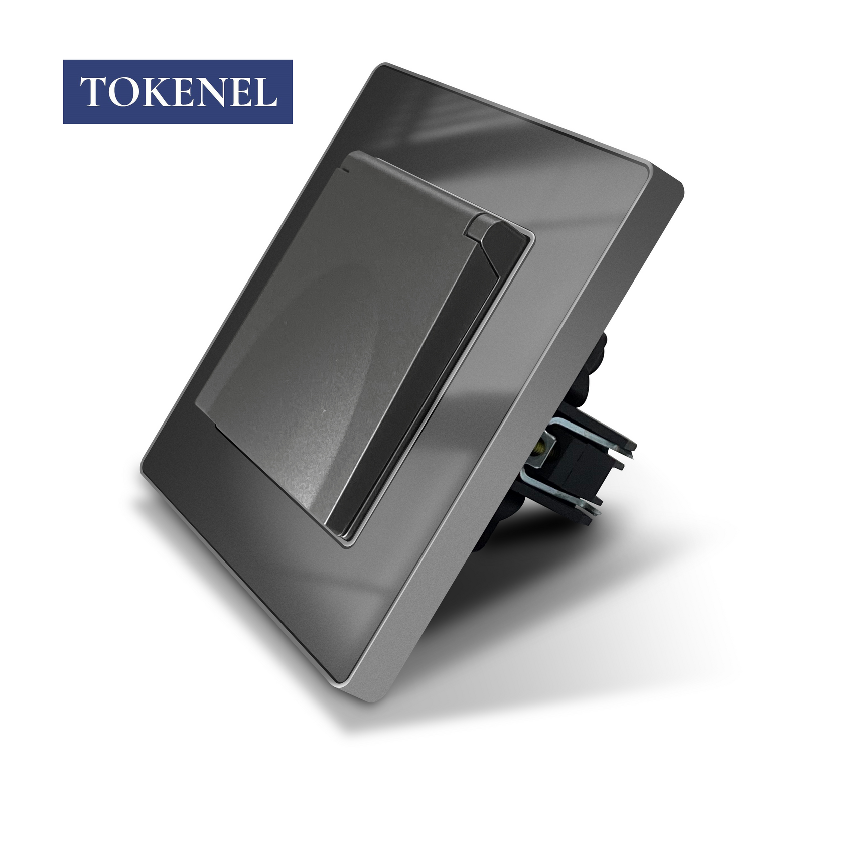 T000921500/ Розетка встраиваемая TOKENEL электрическая с заземлением и защитными шторками, рамка 86х86 мм, 16A, акриловое стекло, белая