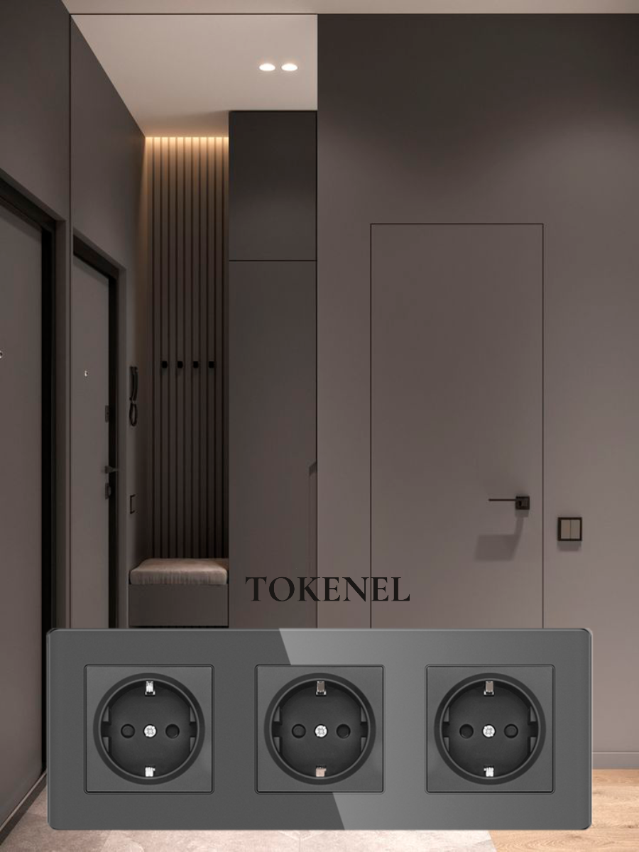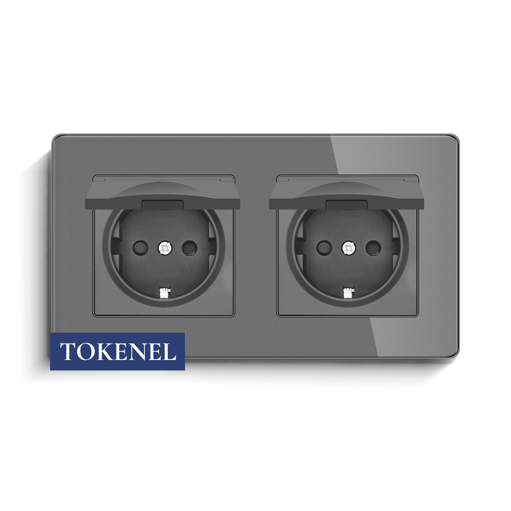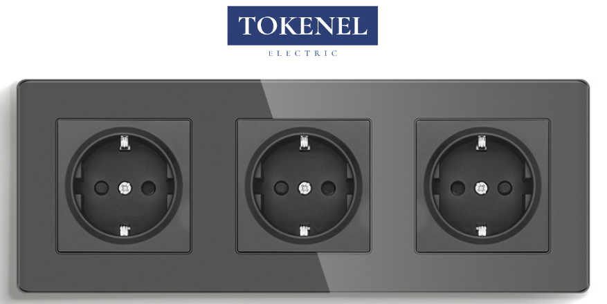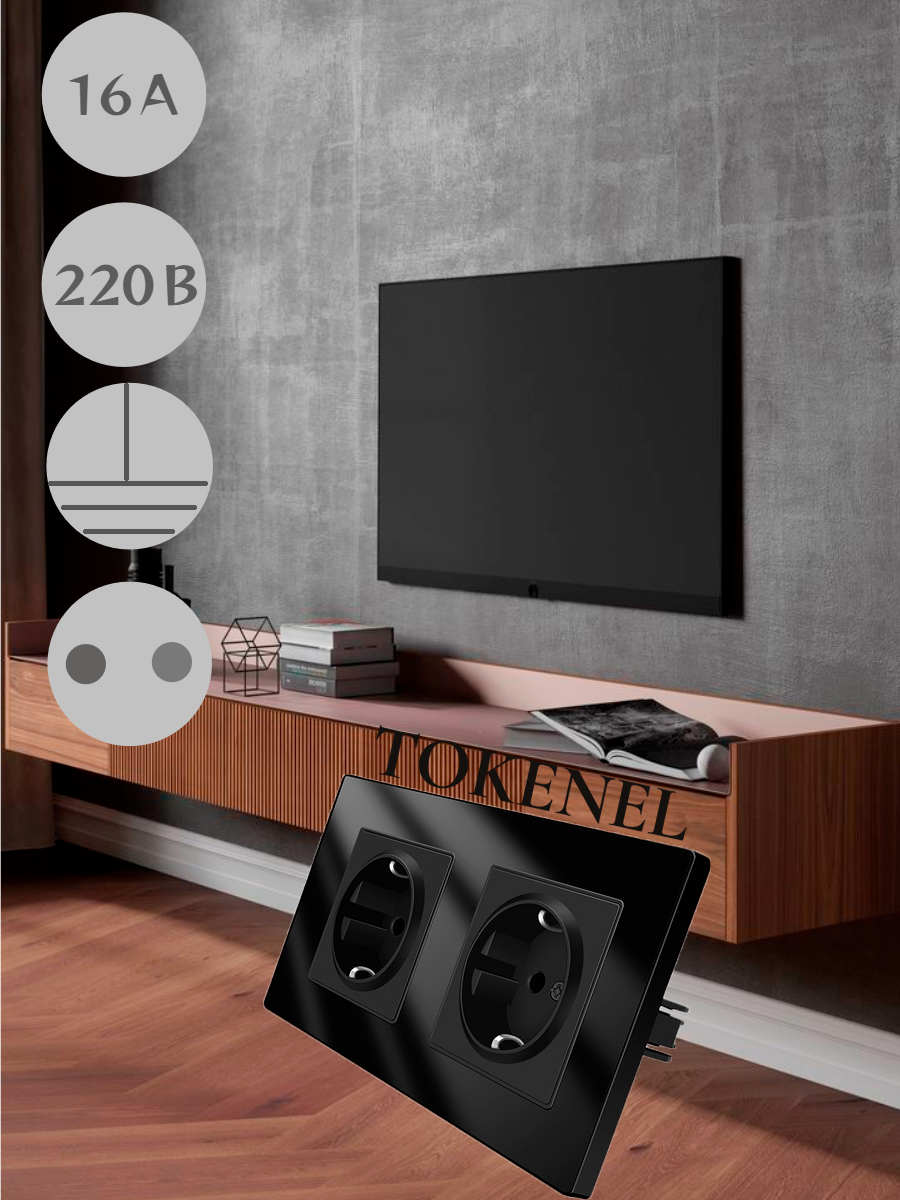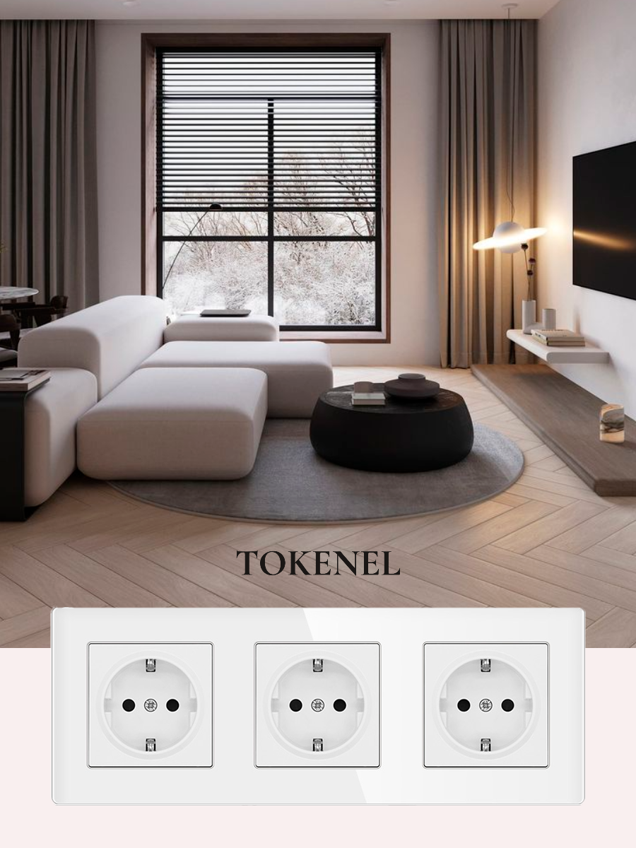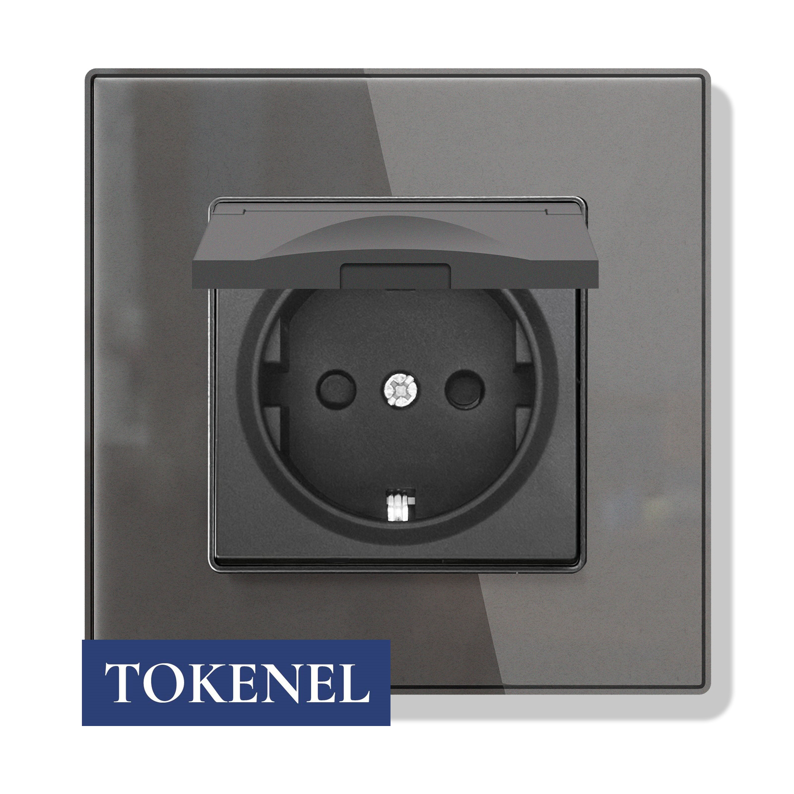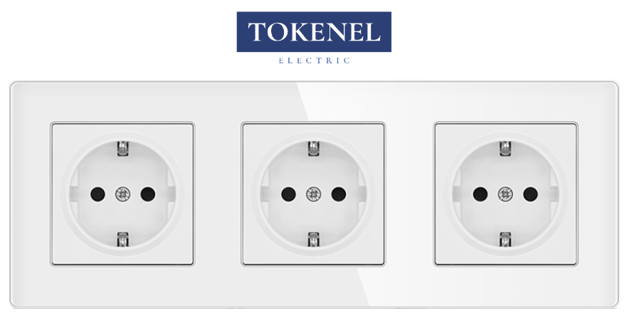 T0000901500/ Розетка встраиваемая TOKENEL электрическая с заземлением и защитными шторками, рамка 86х86 мм, 16A, акриловое стекло, белая