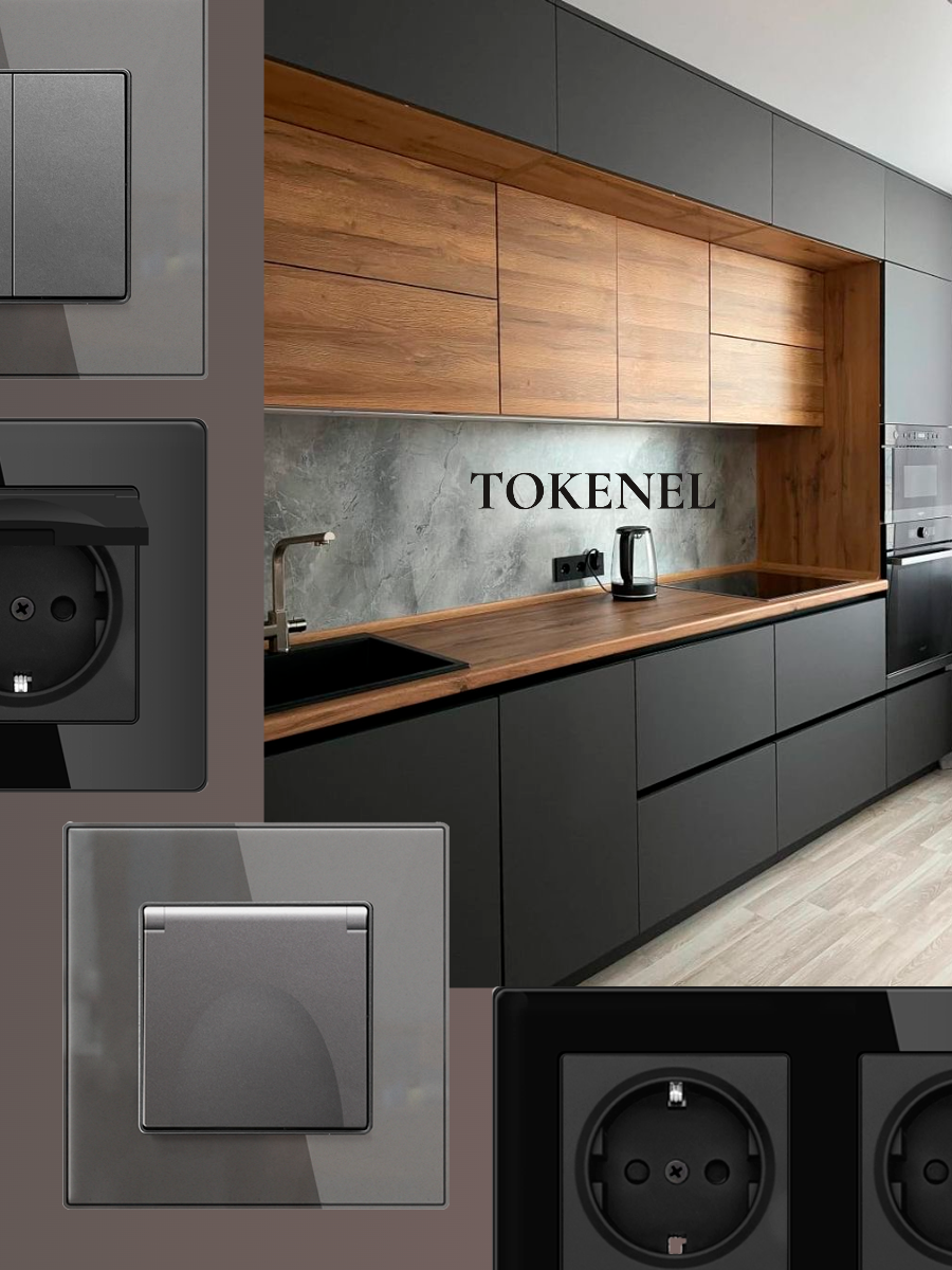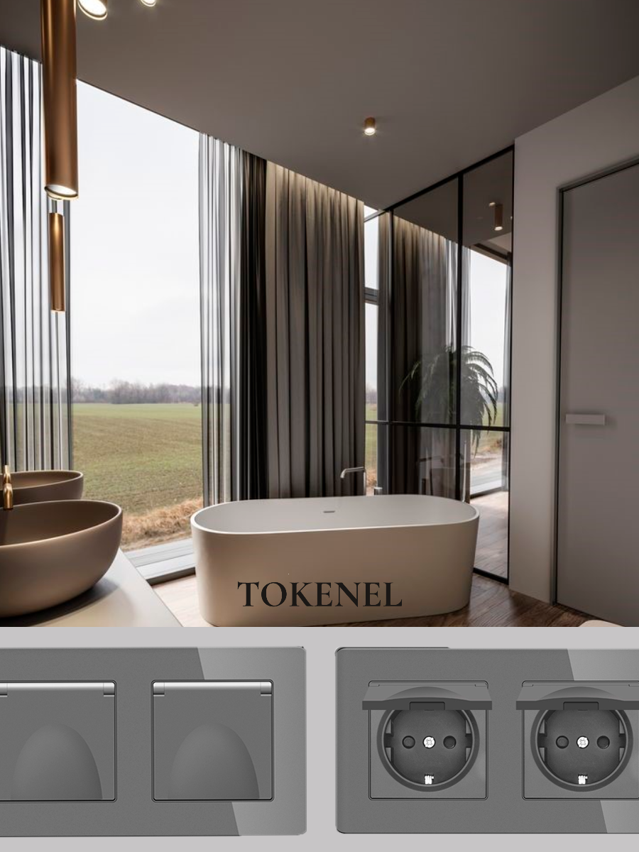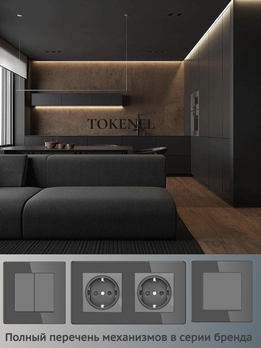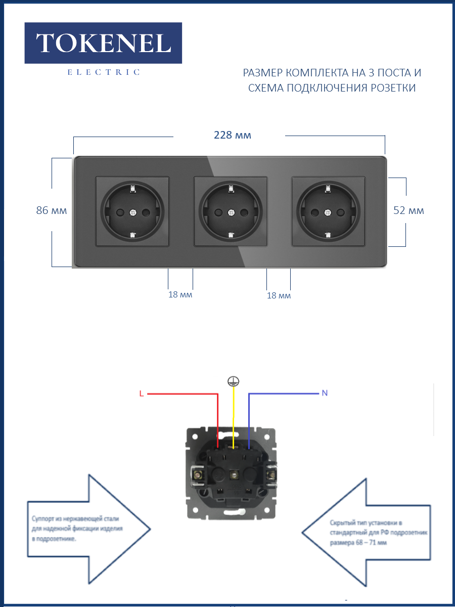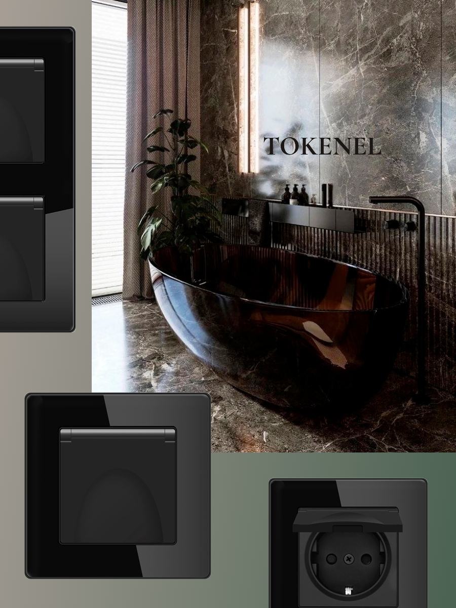 T0000901500/ Розетка встраиваемая TOKENEL электрическая с заземлением и защитными шторками, рамка 86х86 мм, 16A, акриловое стекло, белая