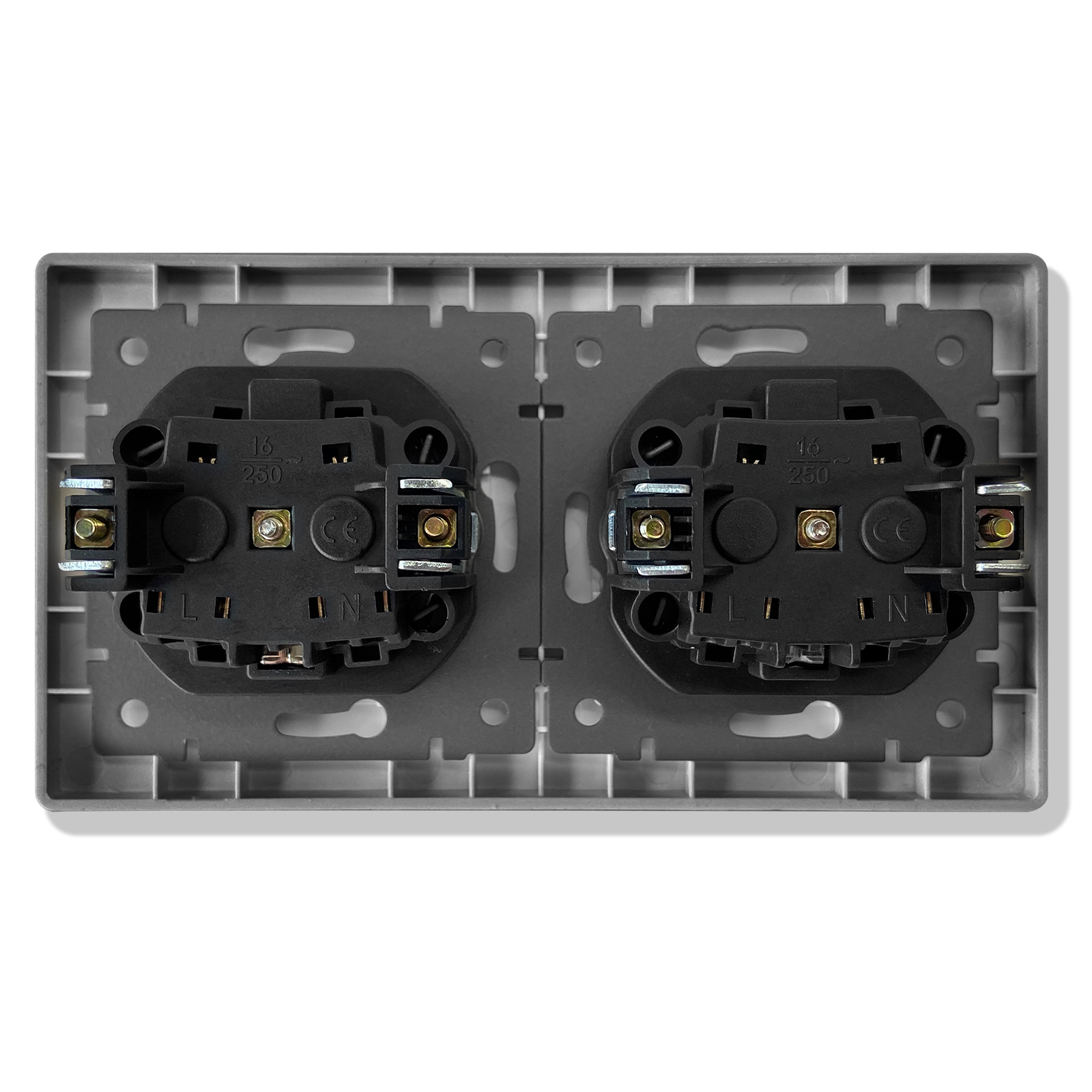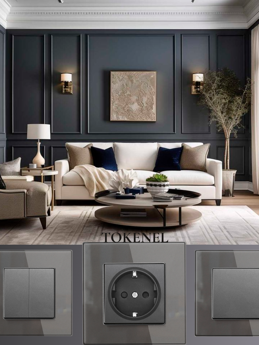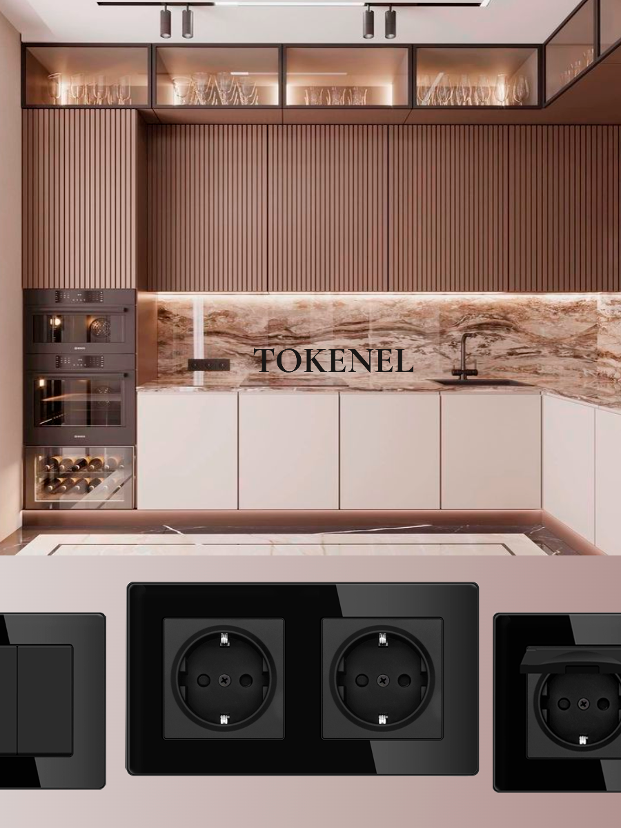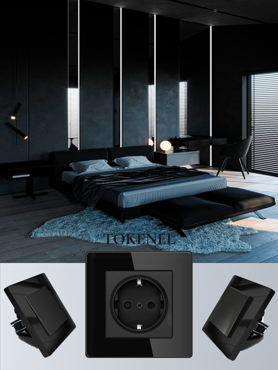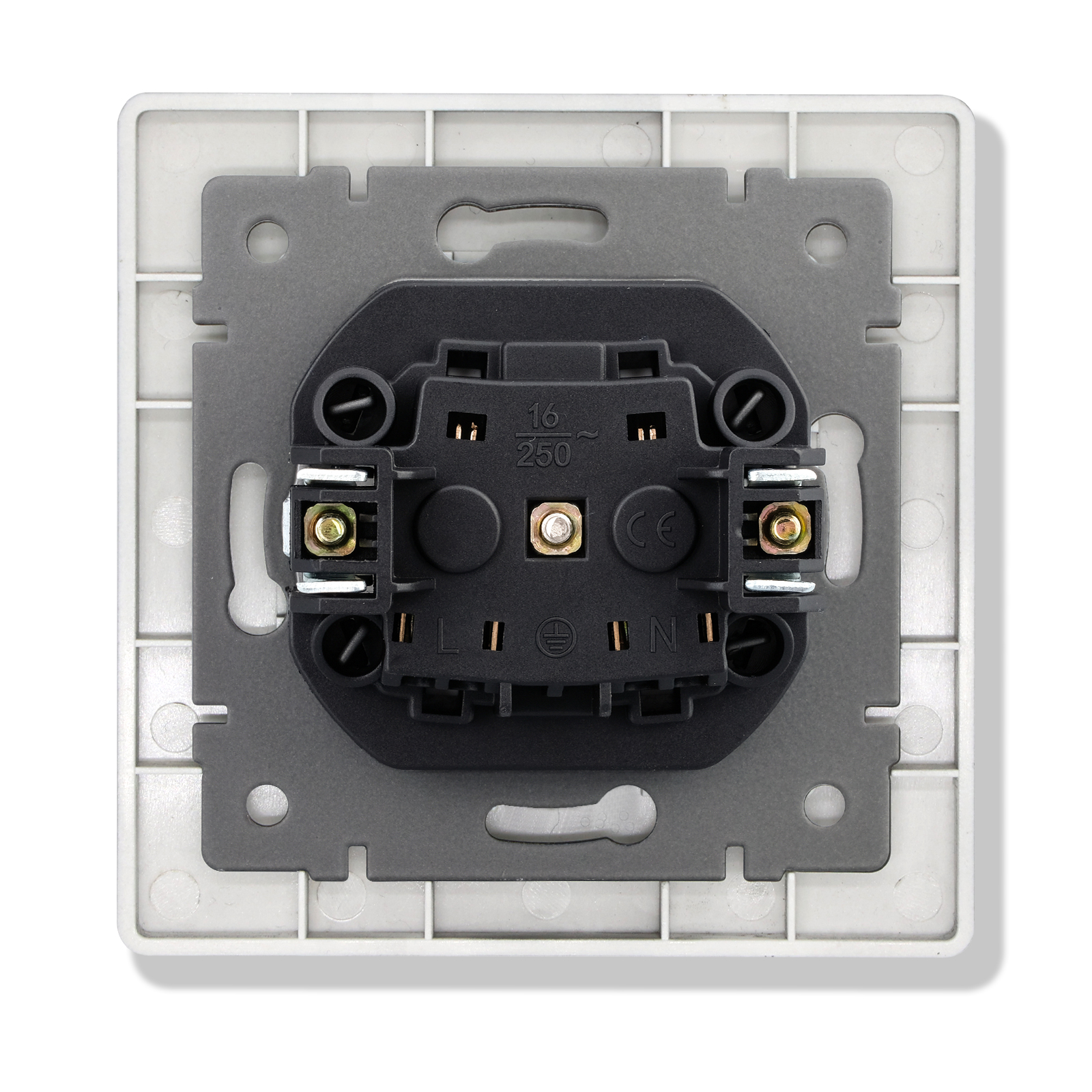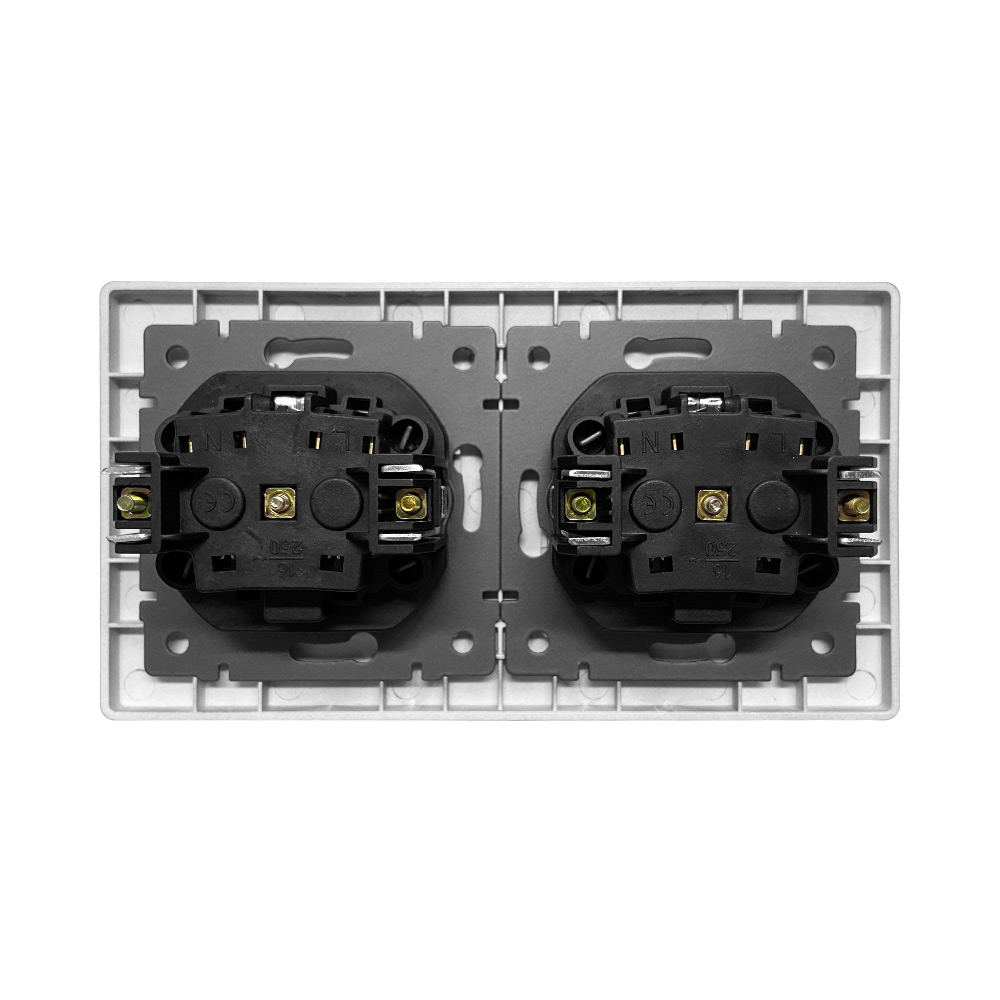 T0000901500/ Розетка встраиваемая TOKENEL электрическая с заземлением и защитными шторками, рамка 86х86 мм, 16A, акриловое стекло, белая